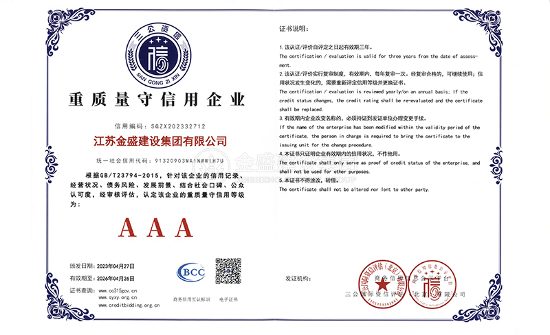 • 3A級(jí)資信等級(jí)證書